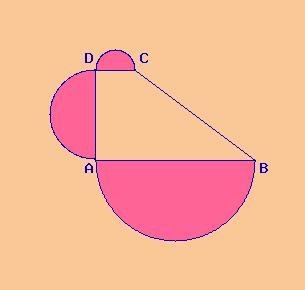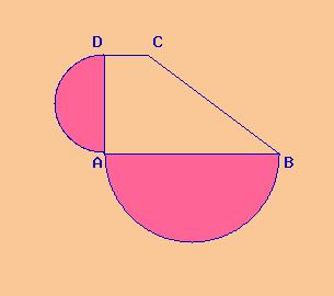 Un trapezio rettangolo ha la base minore congruente all'altezza; la somma e la differenza delle basi misurano rispettivamente 58 cm e 10 cm. Disegna un semicerchio sulla base minore con diametro congruente ad essa; disegna un semicerchio sull'altezza con diametro congruente ad essa. Calcola l'area della parte colorata e il perimetro della intera figura.