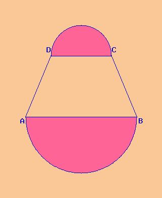 Un trapezio isoscele ha la base minore congruente all'altezza; la somma e la differenza delle basi misurano rispettivamente 68 cm e 20 cm. Disegna un semicerchio sulla base minore con diametro congruente ad essa; disegna un semicerchio sulla base maggiore con diametro congruente ad essa. Calcola l'area della parte colorata e il perimetro della intera figura.