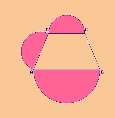 Un trapezio isoscele ha la base minore congruente all'altezza; la somma e la differenza delle basi misurano rispettivamente 68 cm e 20 cm. Disegna un semicerchio sulla base maggiore con diametro congruente ad essa; disegna un semicerchio sulla base minore con diametro congruente ad essa; disegna un semicerchio sul secondo lato obliquo con diametro congruente ad esso. Calcola l'area e il perimetro della parte colorata e il perimetro della intera figura.
