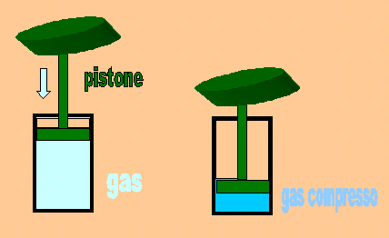 Se prendiamo un cilindro di acciaio, vi mettiamo all'interno del gas, e con un pistone premiamo con forza verso il basso notiamo che il pistone scende con forza verso il basso, il gas diventa più piccolo, cioè occupa meno spazio, meglio occupa meno volume.
