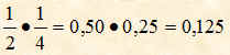 Un altro modo per eseguire la moltiplicazione tra due frazioni è quello di moltiplicare dapprima tutti i numeratori tra di loro e mettere il prodotto ottenuto come numeratore di un'altra frazione; successivamente si moltiplicano tutti i denominatori tra di loro e si mette il prodotto ottenuto come denominatore della frazione ottenuta come prodotto delle due frazioni. per esempio le due frazioni seguenti:
