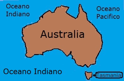 L'Australia è una grande isola, circondata ad ovest dall'Oceano Indiano e da est dall'Oceano Pacifico.