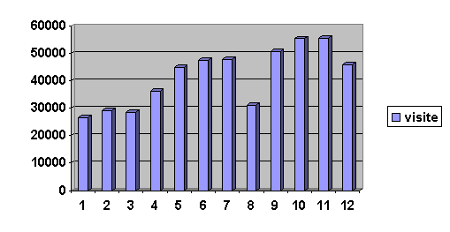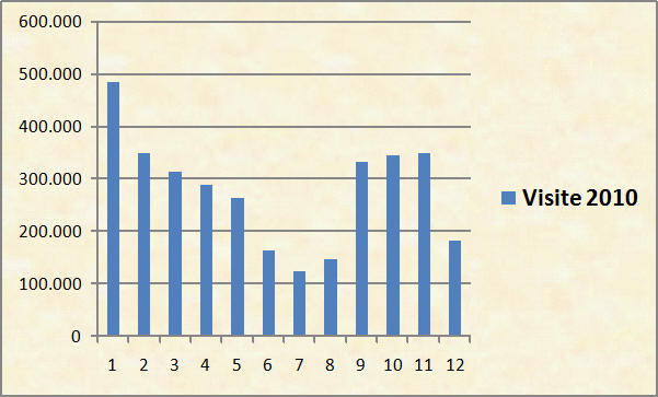 | visite | 26.554 | 29.114 | 28.509 | 36.386 | 44.922 | 47.646 | 47.932 | 31.175 | 50.740 | 55.487 | 55.699 | 45.922 | 500.086 |