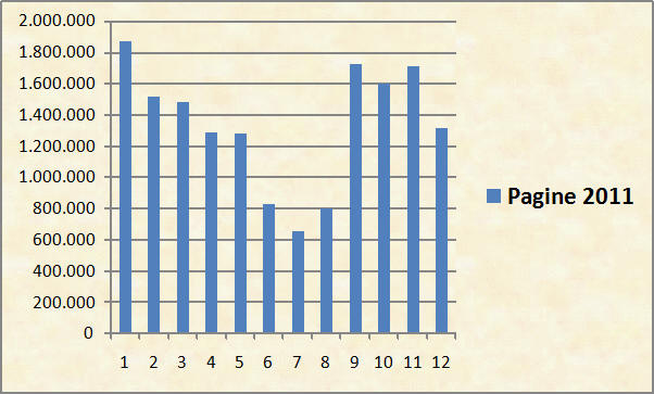 | pagine | 1.419.855 | 1.268.471 | 1.215.858 | 971.528 | 908.042 | 427.032 | 385.844 | 429.796 | 970.724 | 1.162.520 | 1.259.772 | 993.098 | 11.412.540 |