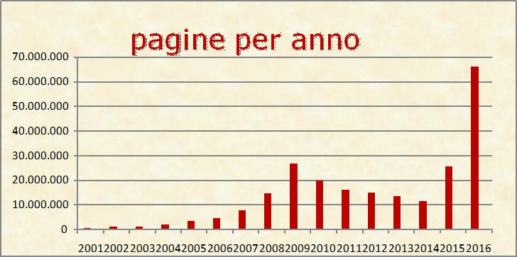 | pagine | 1.661.837 | 1.587.607 | 1.571.363 | 1.256.393 | 1.316.047 | 648.249 | 486.633 | 726.020 | 2.337.114 | 4.135.330 | 6.284.847 | 3.562.077 | 25.573.519 |