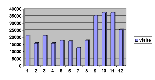 | visite | 21.384 | 15.981 | 21.477 | 16.092 | 17.839 | 17.437 | 12.744 | 18.065 | 35.329 | 37.468 | 37.496 | 25.586 | 276.898 |