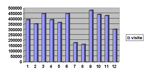 | visite | 341.095 | 280.704 | 287.015 | 249.921 | 276.266 | 184.698 | 148.743 | 162.262 | 338.343 | 316.387 | 328.526 | 249.709 | 3.163.669 |